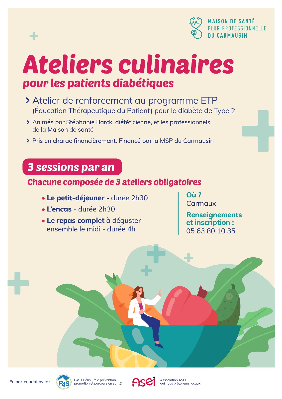3 fois par an, des ateliers culinaires pour les patients diabétiques sont organisés à la Maison de Santé Pluriprofessionnelle du Carmausin. Les ateliers sont animés par Stéphanie Barck (diététicienne) et les professionnels de la maison de santé.